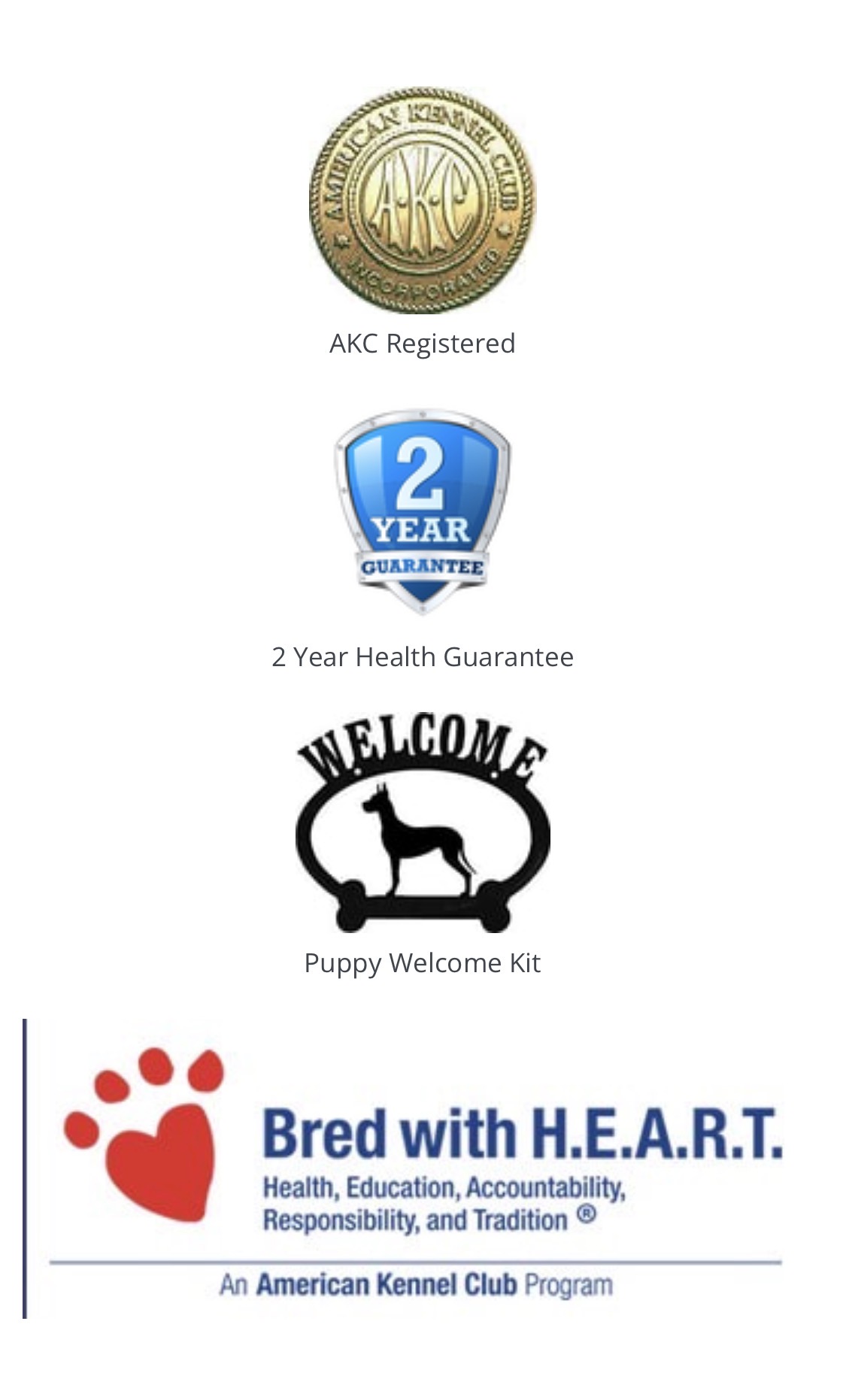our puppies are hand raised indoors, never outside. Our babies come with a 3 year genetic health guarantee against any genetic life threatening disease. And also come vet checked with a State health certificate by our Lic Veterinarian before leaving for their new families as well. And all our babies will be microchipped. Please check out our “About Us” page to learn